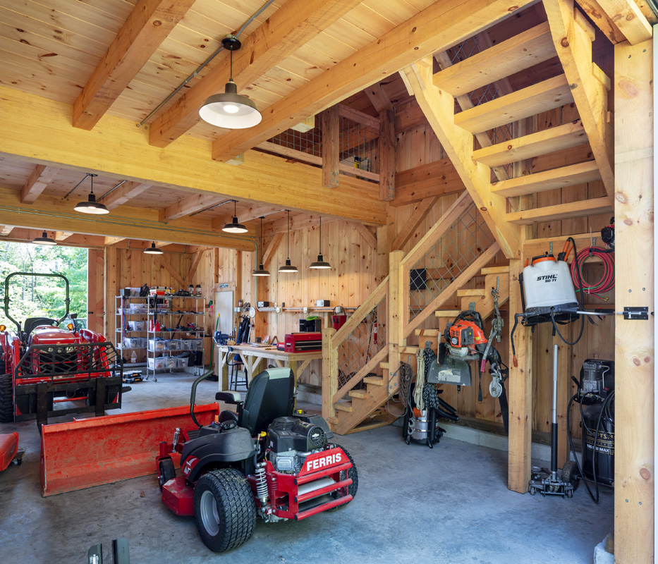 Exposed post-and-beam ceilings bring height and warmth to the interiors, creating open, light-filled spaces that frame views of the surrounding landscape.